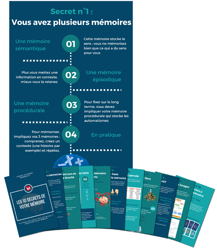 Téléchargez maintenant vos 10 fiches pratiques pour aider votre enfant à mieux mémoriser, mieux apprendre et être plus efficace à l'école :