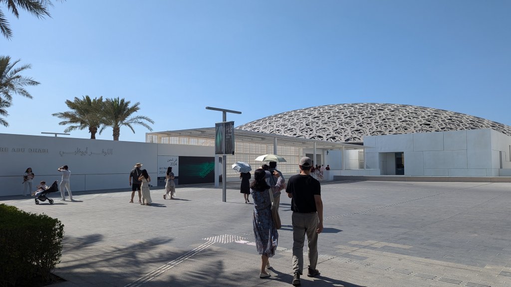 Vous le saviez probablement car l'événement avait fait grand bruit : le Louvre s'est installé à Abu Dhabi et il fallait absolument que j'aille le voir. Ne sachant pas trop à quoi m'attendre, le taxi me dépose près d'un grand dôme qui n'a donc rien à voir avec les pyramides de Paris. Ici, l'image est plutôt celle d'un musée moderne, tourné vers le futur. L'exposition permanente est très intéressante car elle retrace l'histoire de l'humanité à travers plusieurs cultures :